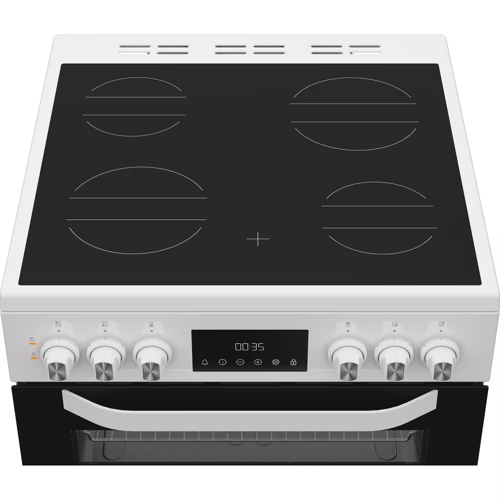 Hotpoint HTE6VDCW 60cm Electric Twin Cooker with Multiflow – White