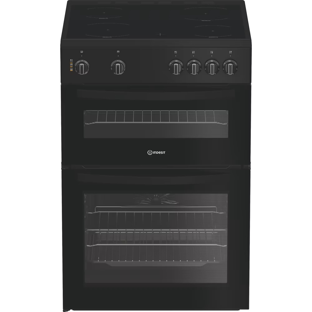 Indesit IDE6VMB 60cm Electric Double Cooker with Ceramic Hob – Black